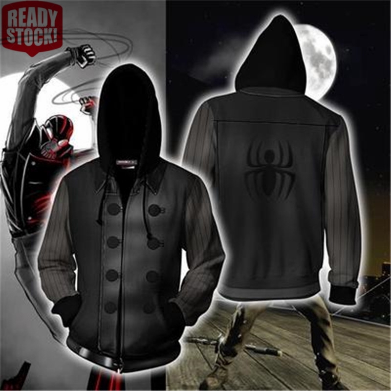 - Men Spider Man Noir Hoodie Black Spider Man Into The Spider Verse Cosplay Sweatshirts Zipper 3d Printed Hoody Jacket Shopee Malaysia Black Spiderman Wallpaper 4k,